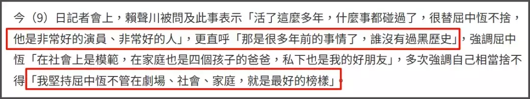 台媒应该没写错吧?赖声川认为一个涉毒艺人是社会的模范、是榜样?据报道,后续屈中恒还正常在台湾省出演话剧,事业完全不受影响。